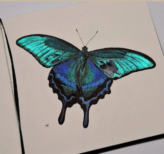 I painted a butterfly with a fine brush, then added golden highlights. Stunning result, even on dark paper ✨🦋